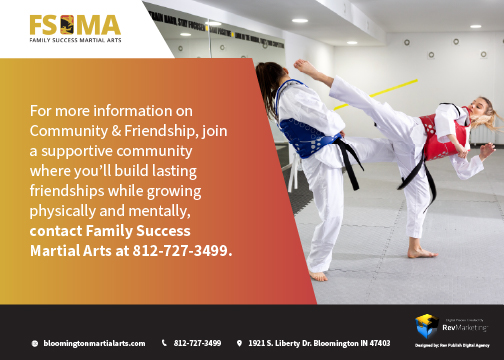 For more information on Community & Friendship, join a supportive community where you’ll build lasting friendships while growing physically and mentally, contact Family Success Martial Arts at 812-727-3499.