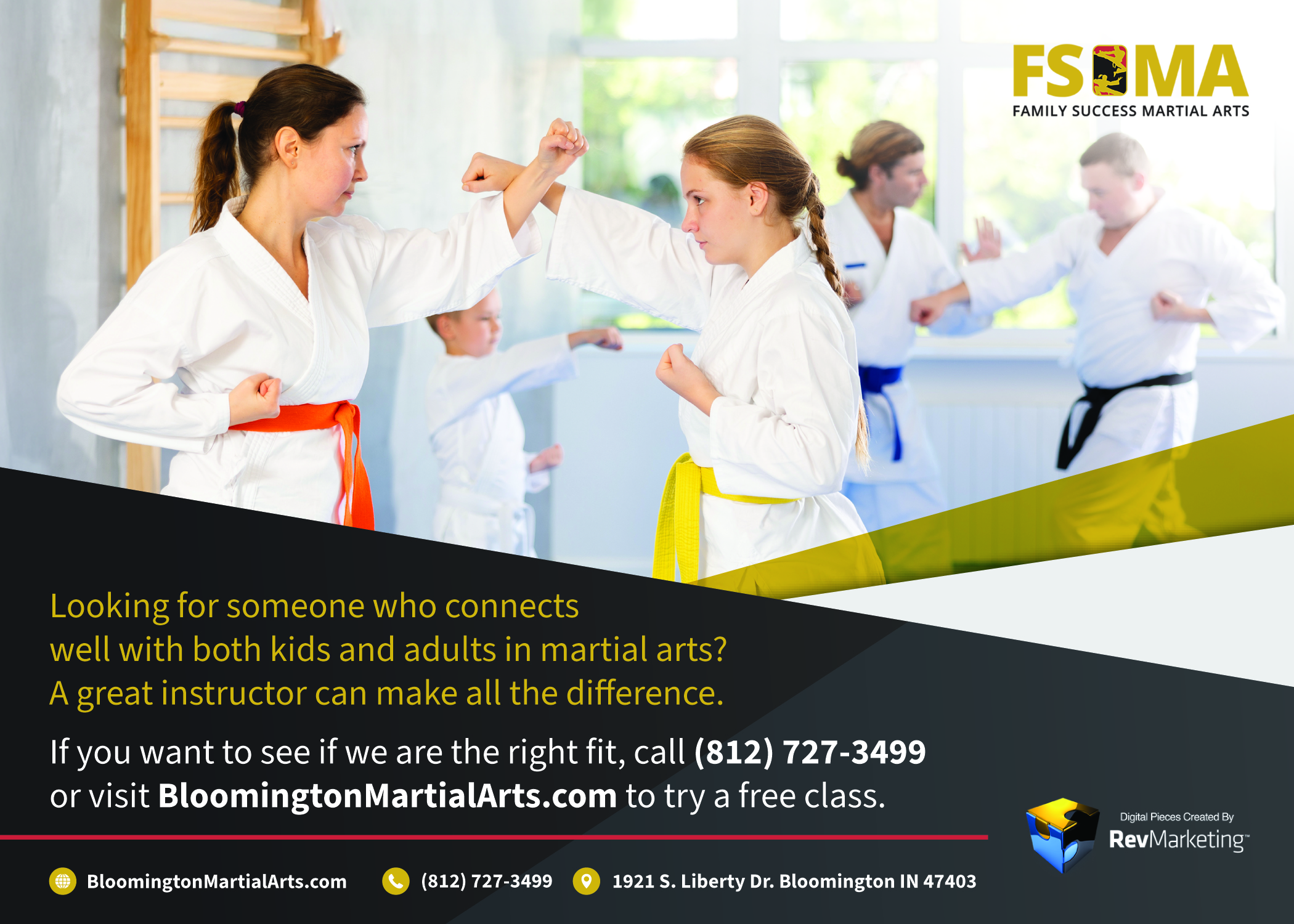 Stop by during a class and see how things feel. A welcoming, family-friendly vibe makes training something to look forward to. If it feels like home, call (812) 727-3499 or go to BloomingtonMartialArts.com to book your first visit.