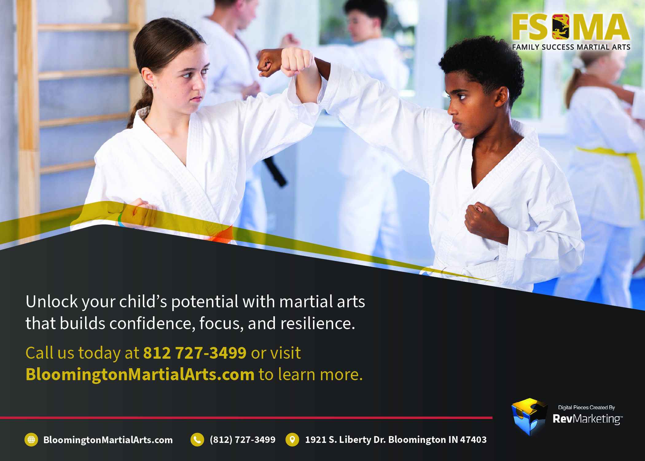 Give your child the skills to stay safe and strong. Visit BloomingtonMartialArts.com and discover how our self-defense classes build real-world confidence. Questions? Call 812-727-3499.