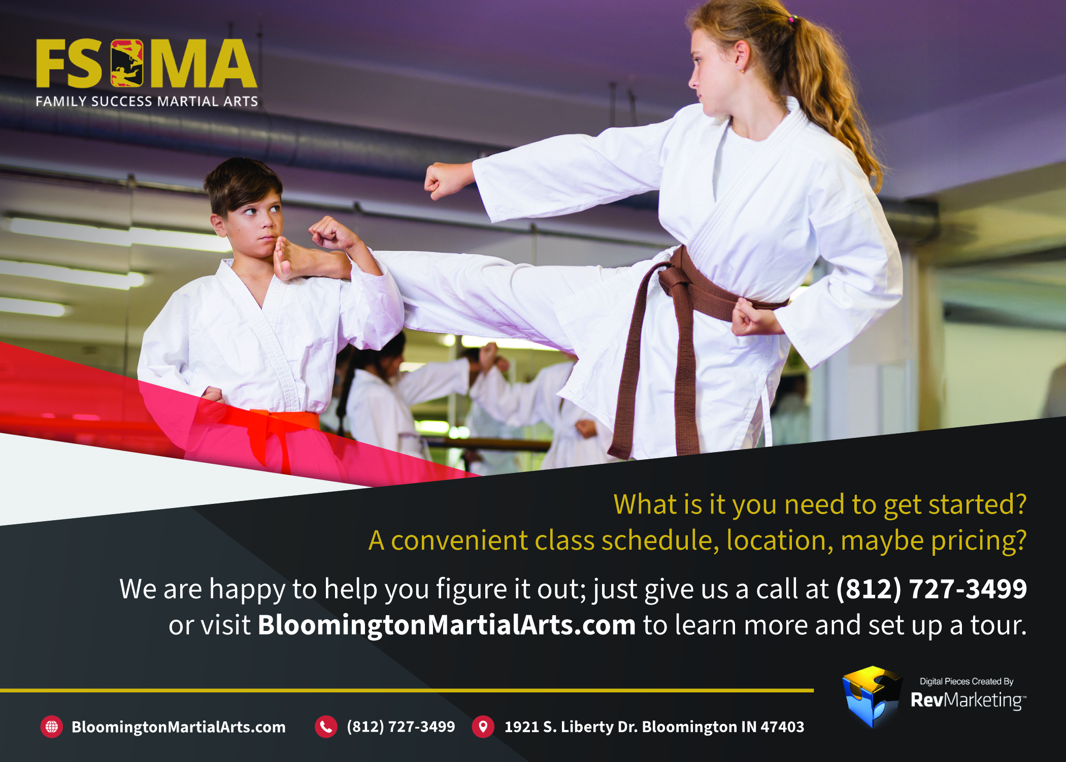 What are you and your family looking for regarding fitness? Is it getting fit, learning self-defense, building confidence, or just having fun together? Give us a call at (812) 727-3499 or check out BloomingtonMartialArts.com to set up a quick visit and chat about your goals.