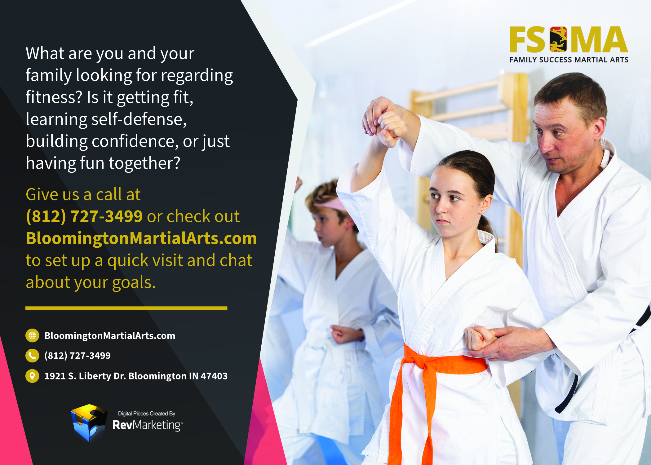 What is it you need to get started? A convenient class schedule, location, maybe pricing? We are happy to help you figure it out; just give us a call at (812) 727-3499 or visit BloomingtonMartialArts.com to learn more and set up a tour.